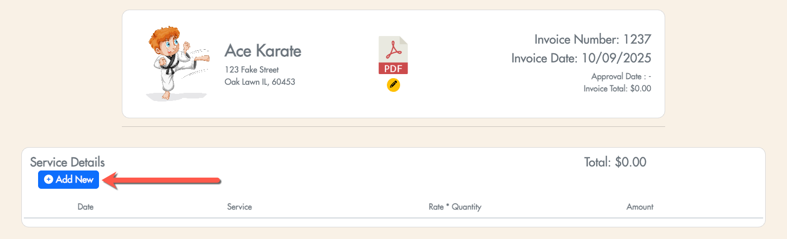 5. Fill in the Invoice Details on the form that appears. Then, click on the "Add" button.